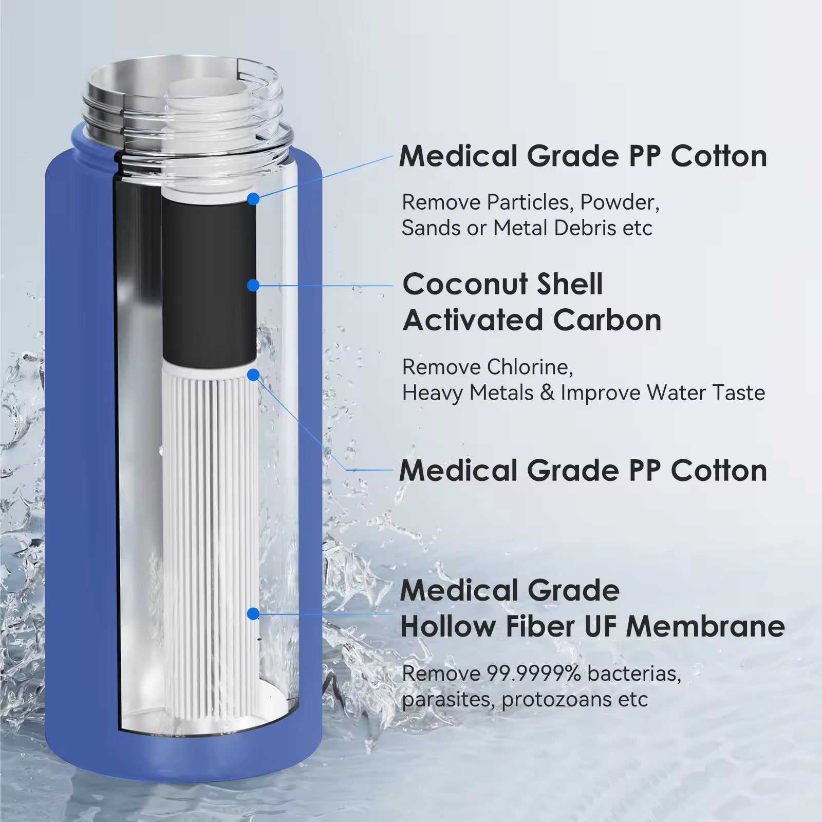 Keep your drinks at the perfect temperature with our 1-litre stainless steel water bottle, equipped with our built-in patented filtration system, it features double-wall insulation for maximum thermal retention. Its sleek design and durable, rust-resistant construction make it an ideal choice for any adventure.